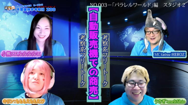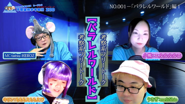 「スタジオパークモード」=不思議探求考察団として、世界中の不思議を考察するトークバラエティ。 考察力の向上訓練も行っていきます。